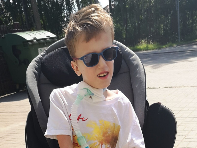 Mateusz przez pierwsze kilka miesięcy nie miał odruchu ssania. Kiedy zaczął jeść samodzielnie, często zachłystywał się, co prowadziło do nawracających zapaleń oskrzeli i płuc. Właściwie pierwsze 2 lata życia chłopiec spędził w szpitalach lub u lekarzy. Obecnie nasz Podopieczny jest karmiony przez PEG, nie chodzi, nie siada samodzielnie, a jego oddech jest wspomagany przez respirator.